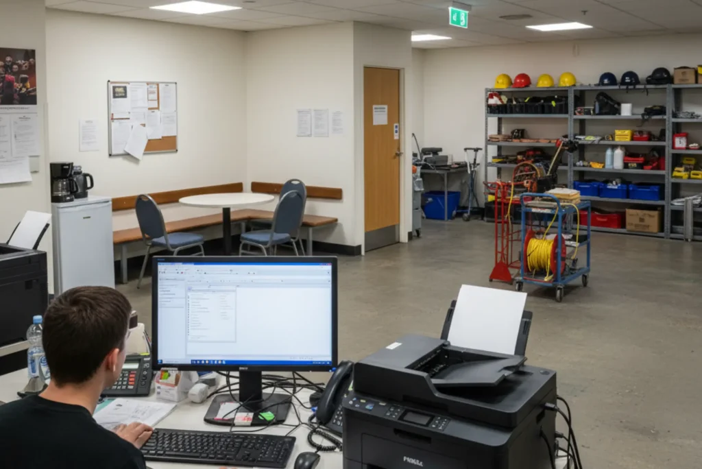 Office IT, POS, printers, staff rooms, maintenance gear.