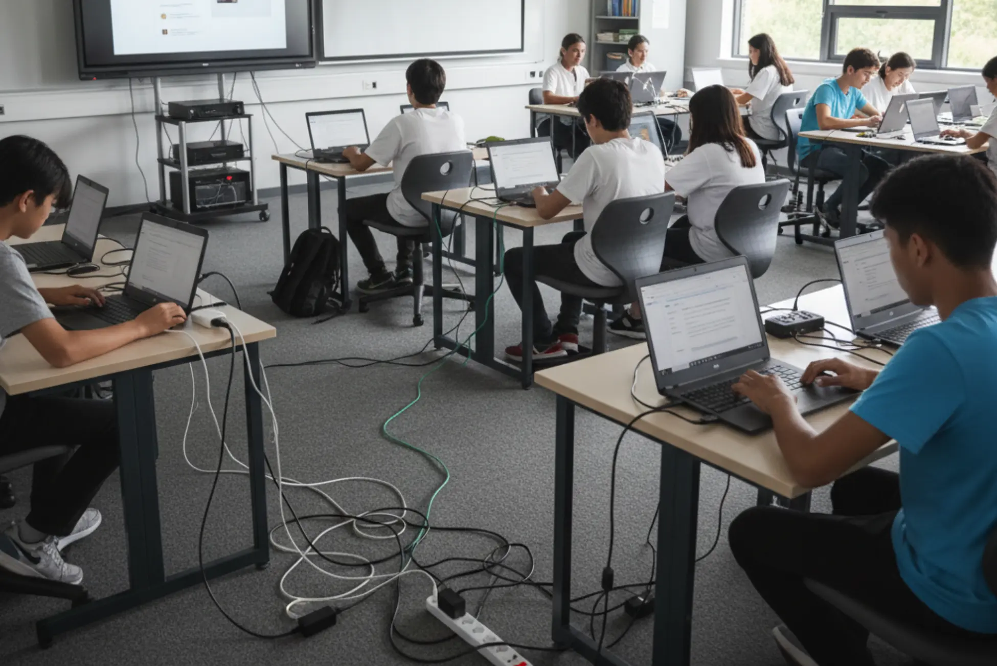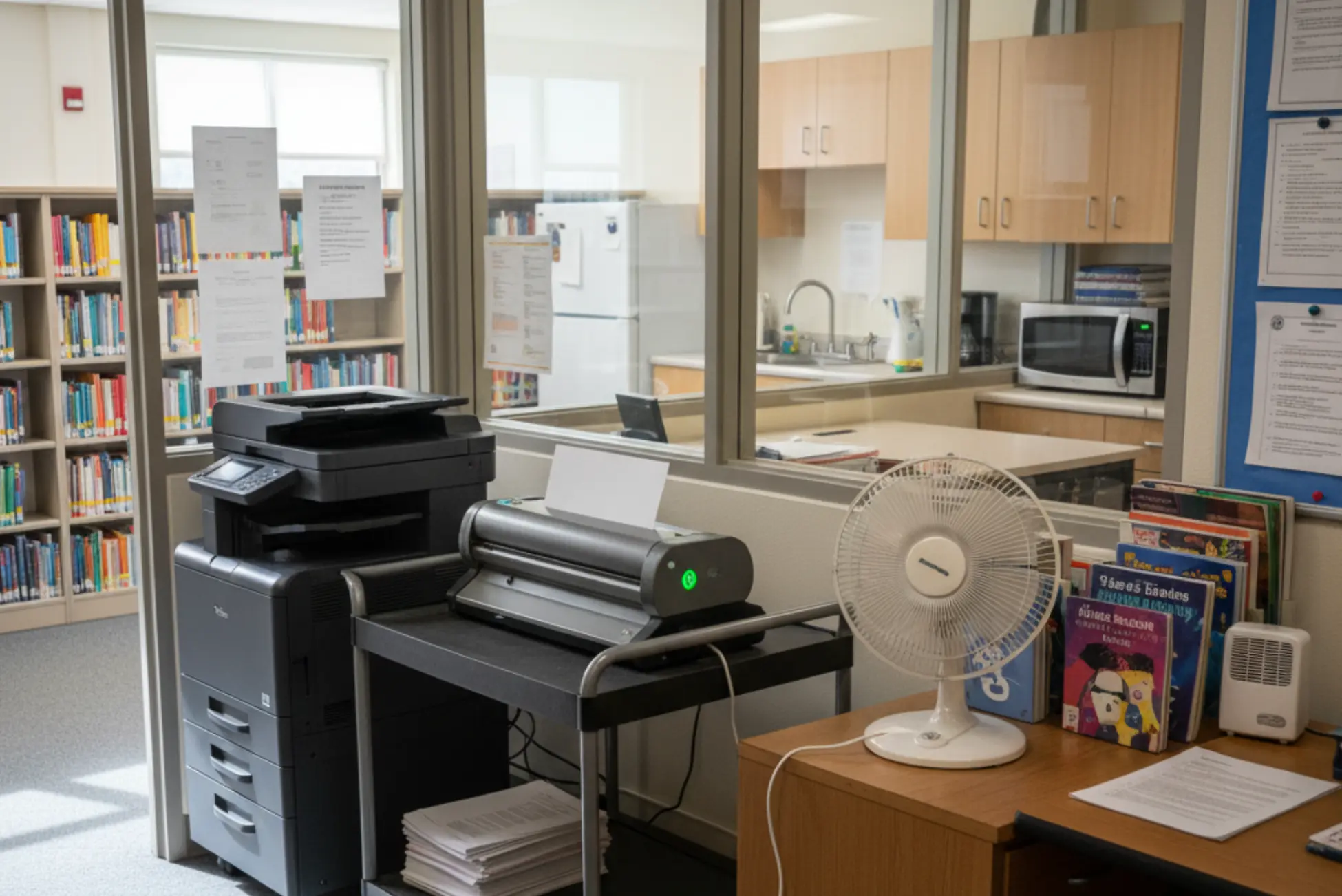 Curious children and high-use areas (classrooms, libraries, canteens) mean appliances and outlets see constant, heavy use.
